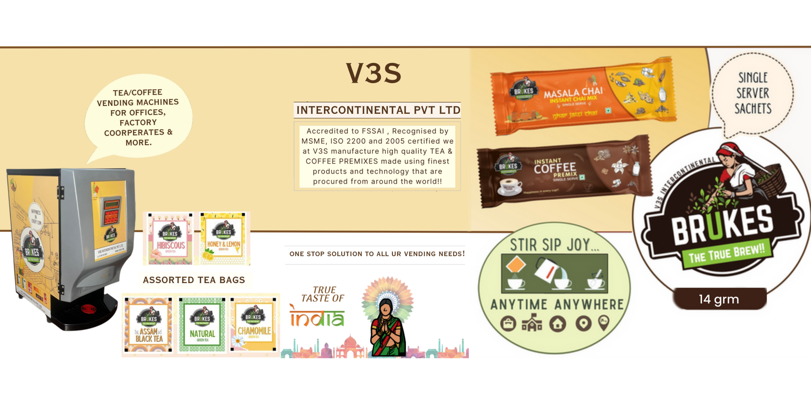 At Brukes, we specialize in the manufacturing of high-quality tea, coffee, soup premixes, along with dairy whiteners and vending machines. With our products accredited by FSSAI and recognized by MSME, we are committed to delivering excellence in every cup. Our processes are certified with ISO 22000:2005, ensuring that every product we offer meets the highest standards of safety and quality.